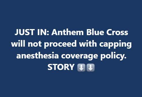 After the American Society of Anesthesiologists (ASA) spoke out against the policy and significant public backlash, Anthem pulled back. The company cited “widespread misinformation” as its reasoning.