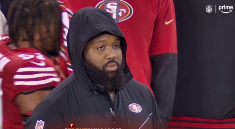 During the broadcast, the Amazon Prime Video cameras cut to inactive 49ers defensive tackle Nesta Jade Silvera on the sidelines. They used a graphic that incorrectly labeled him as Williams: