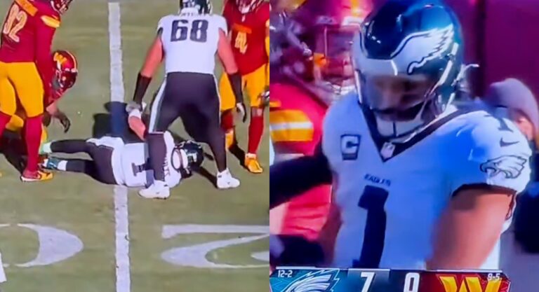 Here’s the play that left Philadelphia Eagles QB Jalen Hurts injured. He’s currently being evaluated for a concussion while Kenny Pickett comes in against the Commanders pic.twitter.com/pJfSYsF1ob