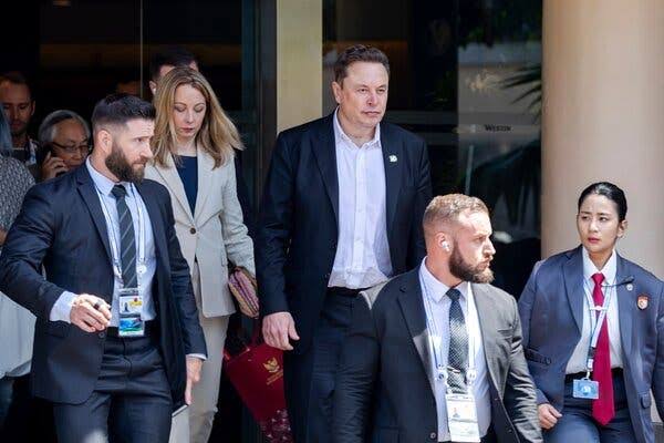 Elon Musk’s security team includes up to 20 security guards and a medical professional, NYT reports.
