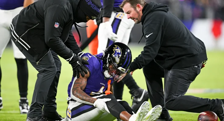 Ravens WR Zay Flowers just went down with a right knee injury… walked off slowly with help. pic.twitter.com/Q2N6k1pvhZ