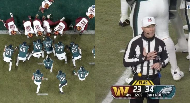 Frankie Luvu jumped offsides on back to back plays, which lead to the referee revealing that he can award the Eagles with a touchdown if the Commanders continue to commit pre snap penalties.