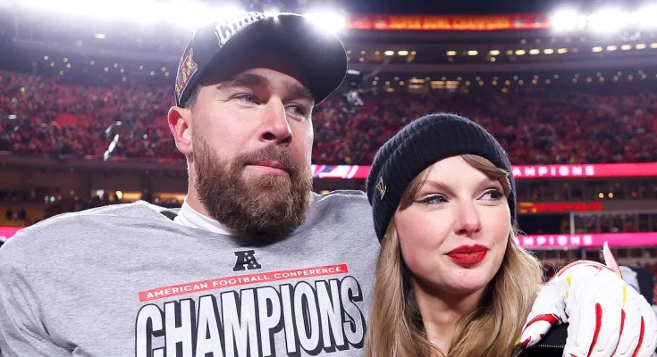 Travis Kelce and Taylor Swift celebrate after the AFC Championship Game on January 26, 2025, in Kansas City, Missouri. | Source: Getty Images