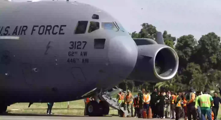 Speaking at his Doral golf club to Republican lawmakers on Monday (February 3), Trump said: “For the first time in history, we are locating and loading illegal aliens into military aircraft and flying them back to the places from which they came.”