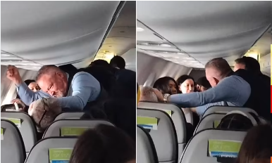 The unnamed woman with long black hair eventually stood up and walked away as the flight attendant kept his hand on the man’s shoulder while he shrieked loudly.