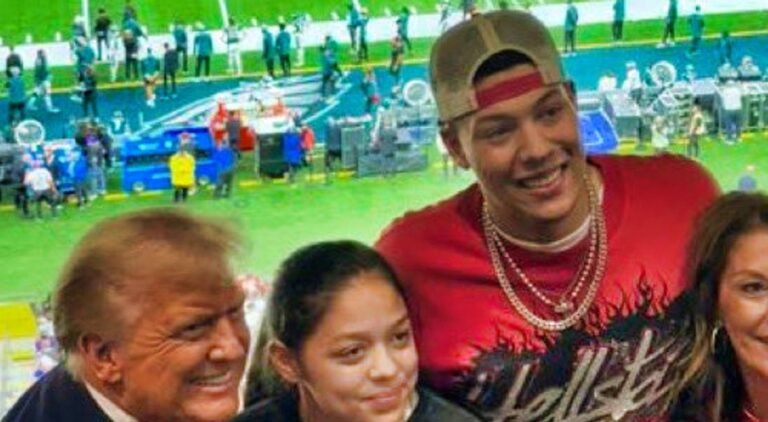 A picture has surfaced of Donald Trump taking a picture with Jackson Mahomes, Randi Mahomes, and a younger family member of Mahomes.