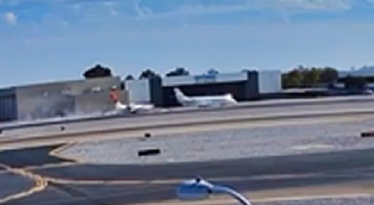 “According to initial reports, the Learjet’s left main landing gear failed upon landing, leading to the collision,” the City of Scottsdale said in a statement.