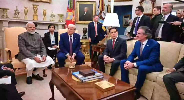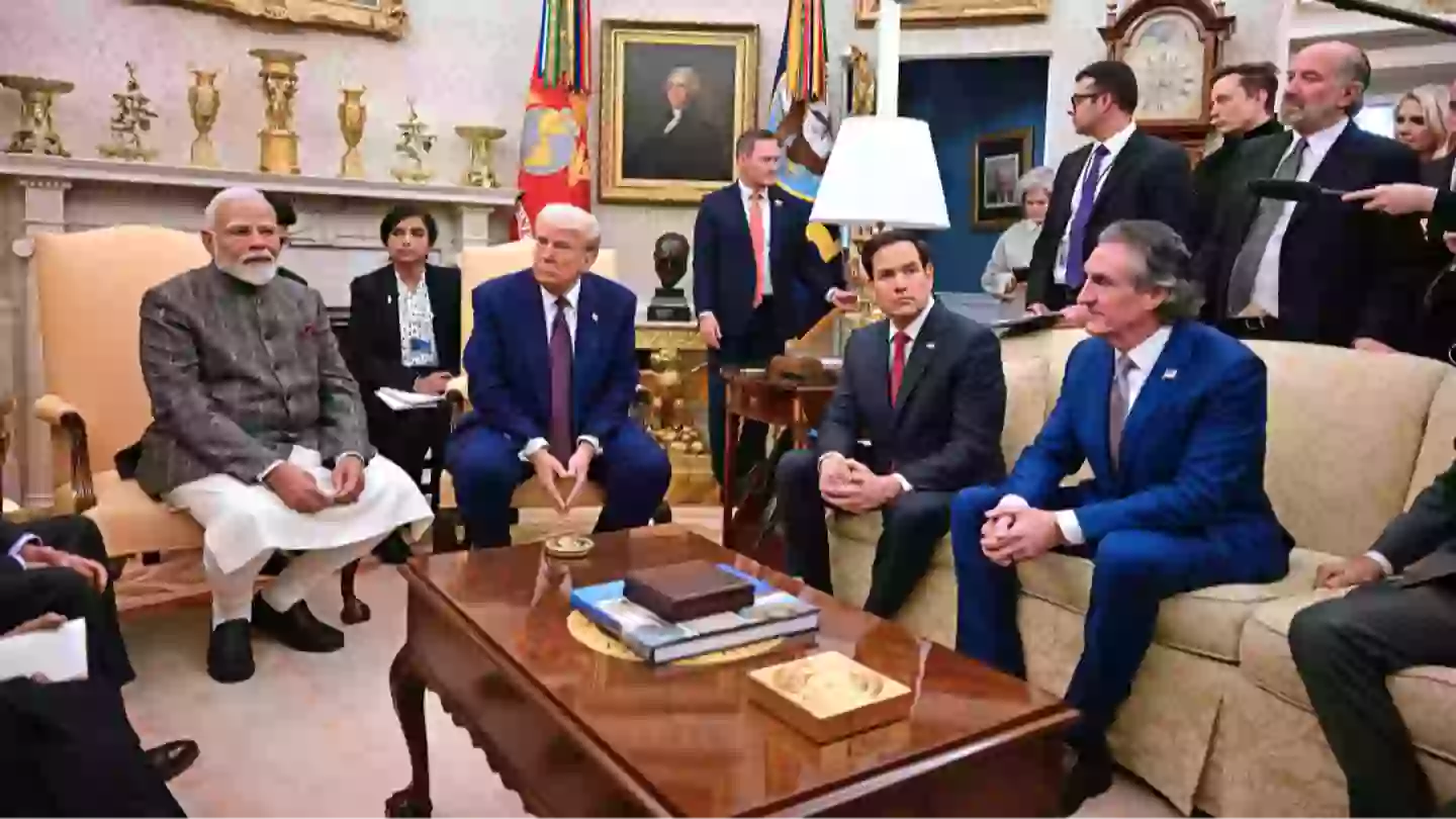 The 78-year-old met with India’s Prime Minister at the Washington D.C. residence on Thursday (13 February) as photographers snapped away as they sat at the Resolute desk.