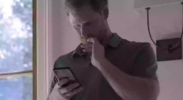 Harry’s reaction to a text from William was shown on his and Meghan’s Netflix docu-series (Netflix)