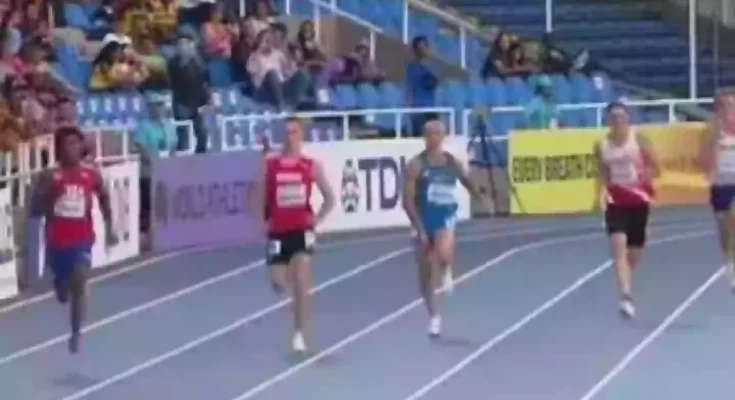 A runner was left with his head in his hands and *something* hanging out of his shorts when he completed his race at the 2022 World Athletics U20 Championships.