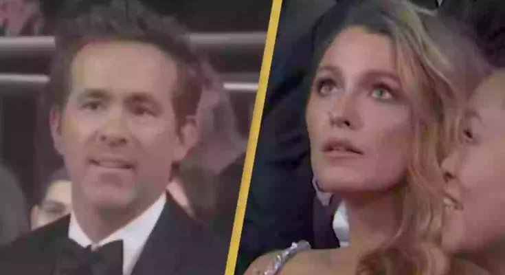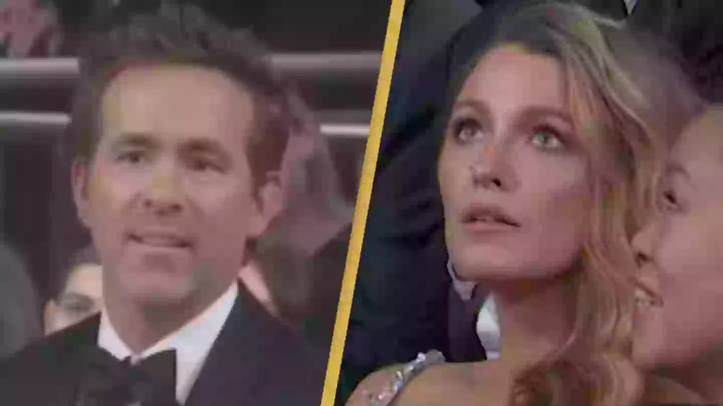 While Reynolds was stood up at the time, Lively remained seated next to him and her reaction to his response was caught on camera.
