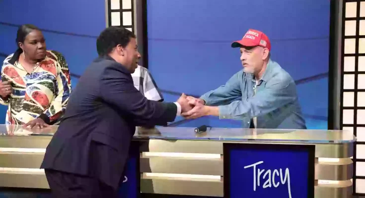 In the act, Hanks reprised his role of Doug from Black Jeopardy!.