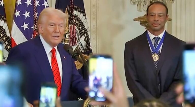 “Let me ask you, is there anybody like our Tiger?” Trump asked before calling on him to speak.