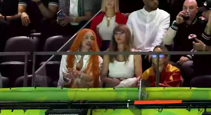 “Ice Spice then looks at Taylor to see her reaction to being booed.”