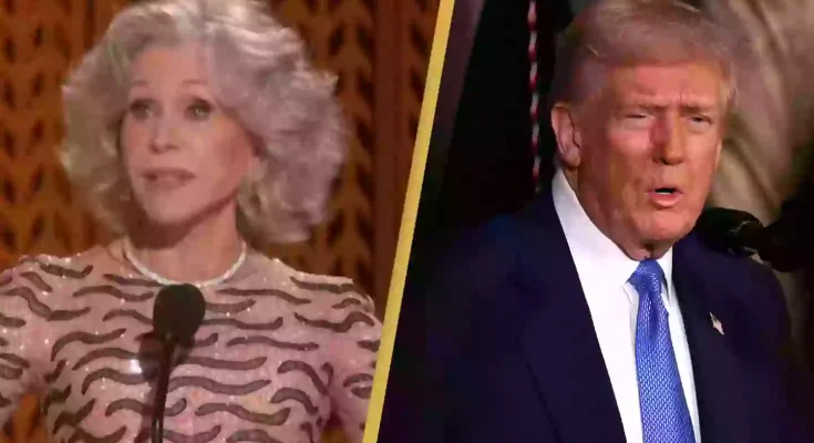 Jane Fonda appeared to make a dig at President Donald Trump in her SAG Life Achievement Award speech.