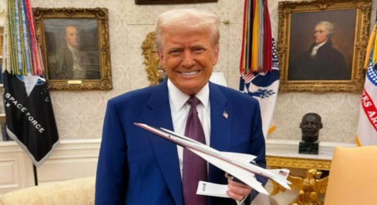 Blake Scholl, the CEO and co-founder of Boom Technology, shared an image of President Trump holding the model on X/Twitter: