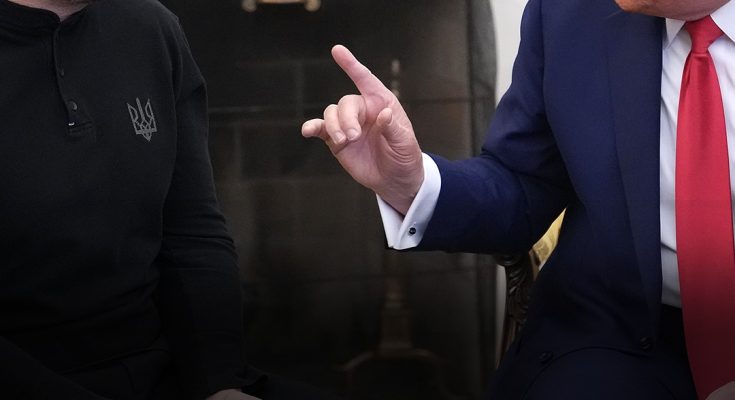 Donald Trump (right) laid into his Ukrainian counterpart Volodymyr Zelensky (left) during talks between the two presidents at the White House on Friday