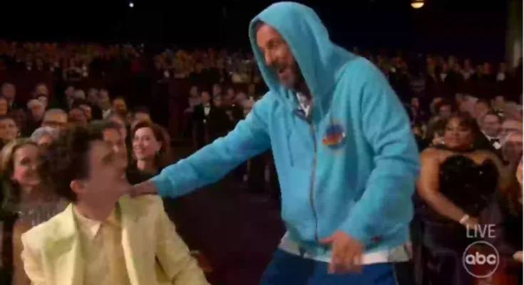 Timothée Chalamet got caught up in a bizarre interaction with Adam Sandler at last night’s Oscars (ABC)