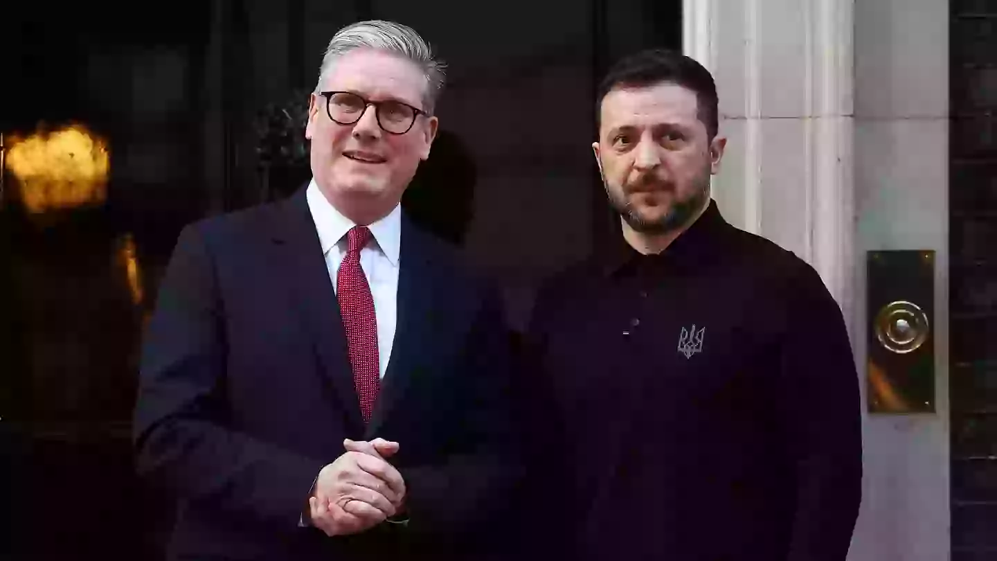 President Volodymyr Zelenskyy enjoyed a cup of tea with British Prime Minister Keir Starmer (Ukrainian Presidency / Handout/Anadolu via Getty Images)