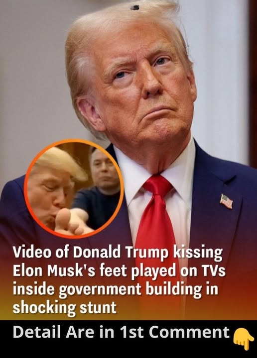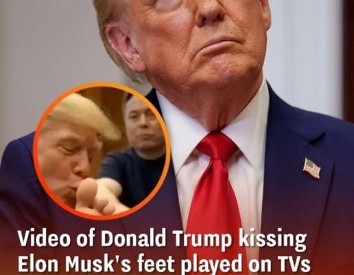 The video shows a television that is suspended from the ceiling, and it appears that Elon Musk and Donald Trump are seen on the television. Trump is seen giving Musk’s toes a good old-fashioned kiss.