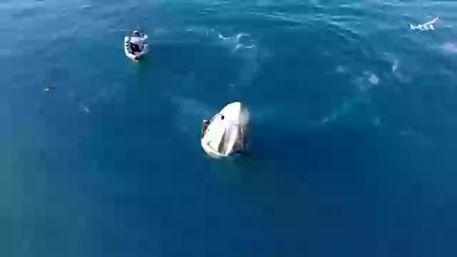 As the spaceship bobbed in the waters, gray dorsal fins were spotted all around which NASA has since called the ‘unplanned welcome crew.’ Check it out: