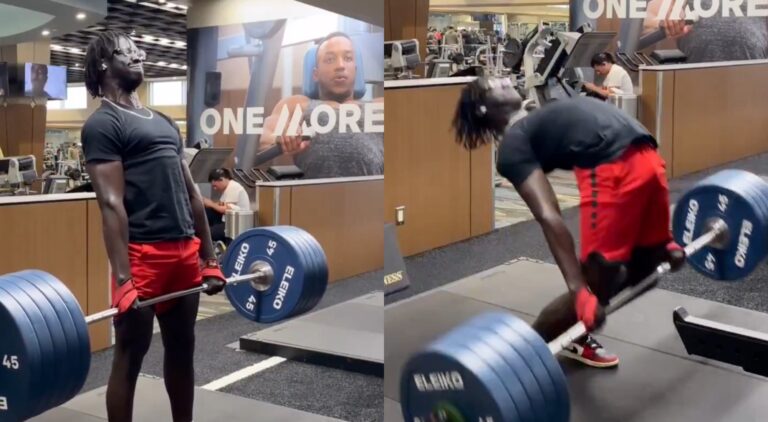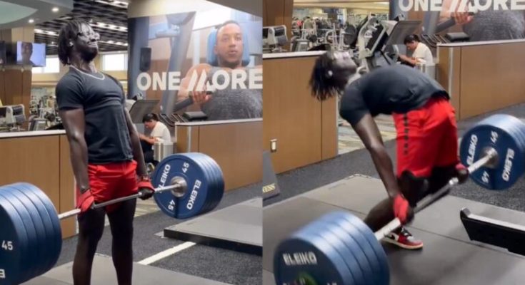 While the enthusiastic gym goer scored a 10/10 for his attempt, he couldn’t quite pull off a perfect execution. As he struggled to pull the heavy weight on the deadlift, he suddenly collapsed like what some trolls call- a folding deckchair.