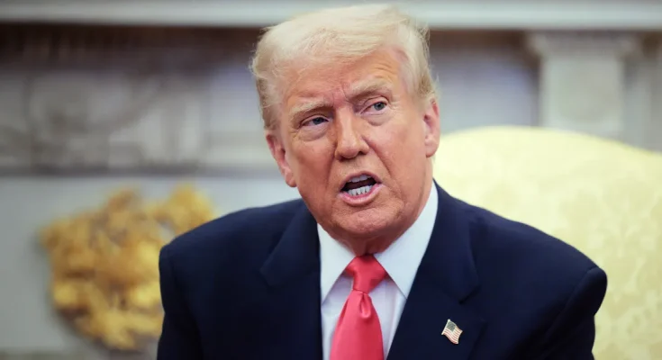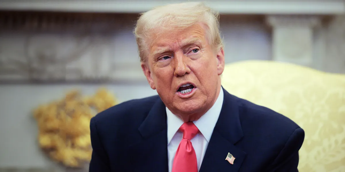 Donald Trump speaking during his meeting with President Nayib Bukele of El Salvador in the Oval Office of the White House in Washington, D.C., on April 14, 2025. | Source: Getty Images