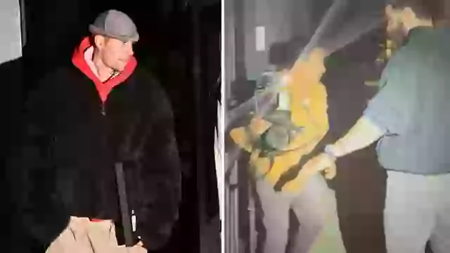 In the clip, you can hear the singer say ‘look at these guys’ as he is being ushered from a building and out into the streets.