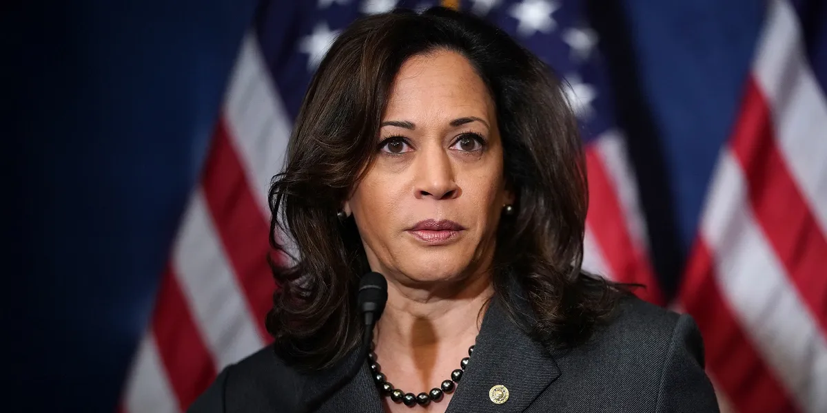 Kamala Harris looks on while speaking. | Source: Getty Images