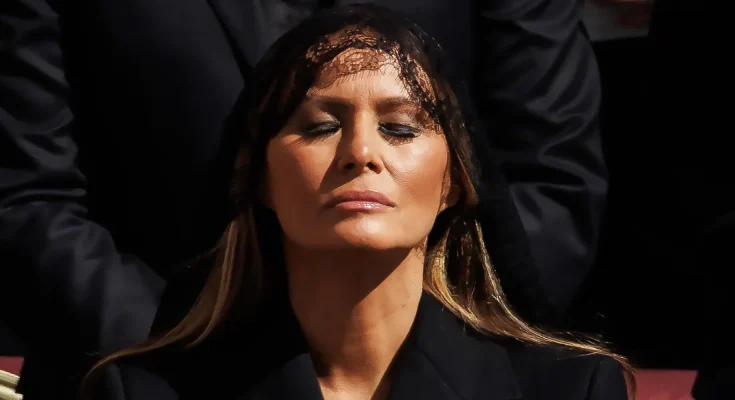 The accompanying photo shows Melania in black and white, eyes closed, seemingly in prayer or deep reflection. She is dressed in dark attire. Even with the eyes of the world upon her, the First Lady marked the day with dignity, restraint, and devotion.