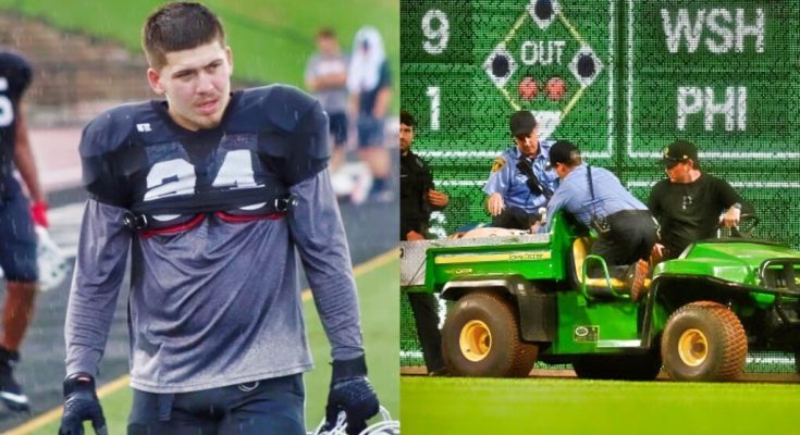 Markwood fell after Pittsburgh hitter Andrew McCutchen gave the Pirates a 4-3 lead in the seventh inning. CBS reported that a second fan jumped from seating in a lower area to assist him. He was eventually stretchered off, leaving the field motionless.
