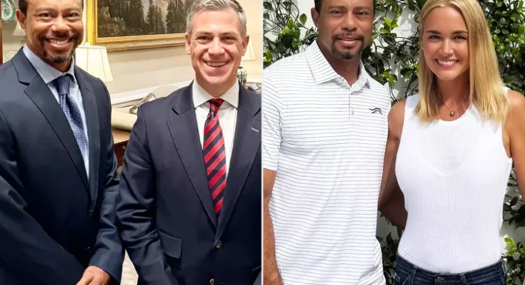 The golf icon, 49, was pictured alongside Sen. Jim Banks of Indiana in a photo shared to X on Thursday, May 8.