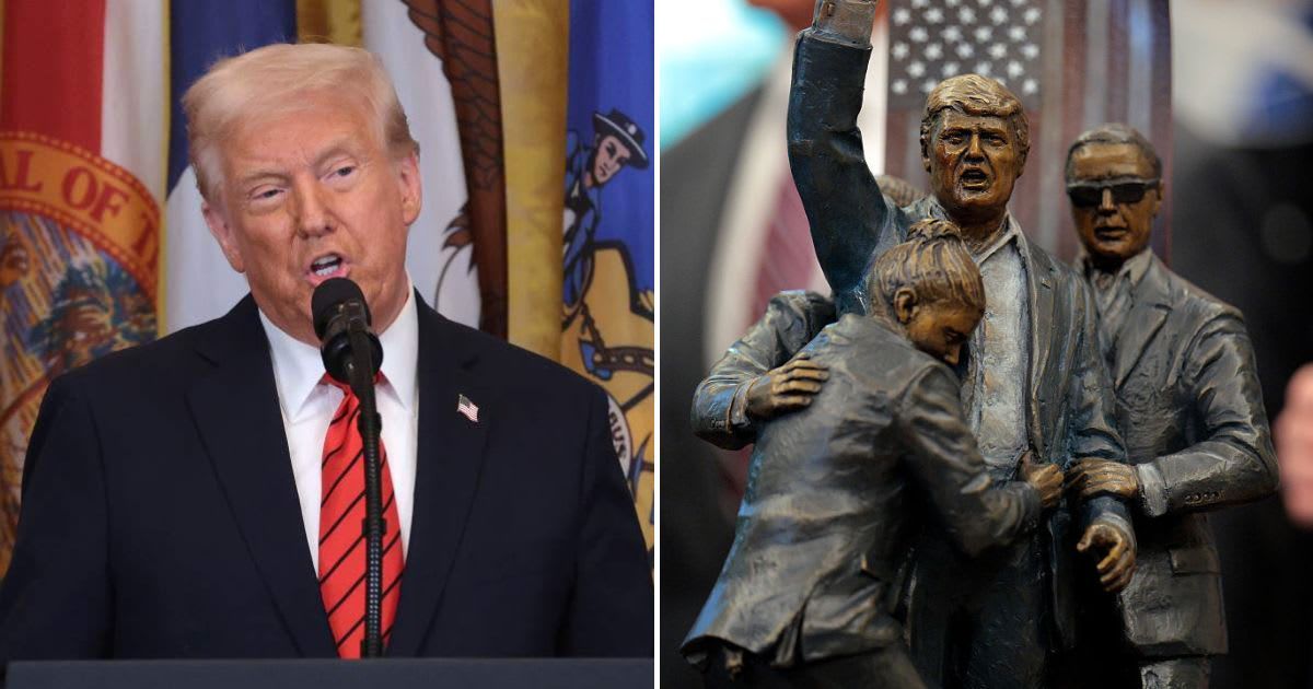 Trump adorns Oval Office with statue depicting Butler assassination attempt — as artist plans massive 9-foot sculpture pic.twitter.com/fmKn22zUQr