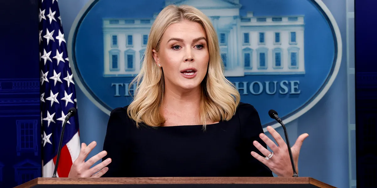 Karoline Leavitt is seen talking to reporters during a news conference at the White House on May 19, 2025, in Washington, D.C. | Source: Getty Images