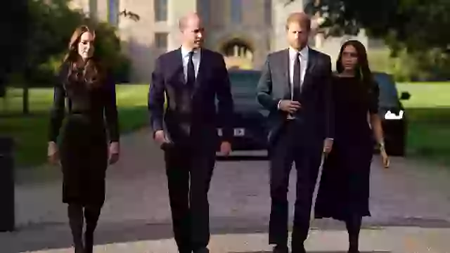 From left to right: Prince Harry, Meghan Markle, Prince William, and Kate Middleton (Emilio Morenatti – WPA Pool/Getty Images)
