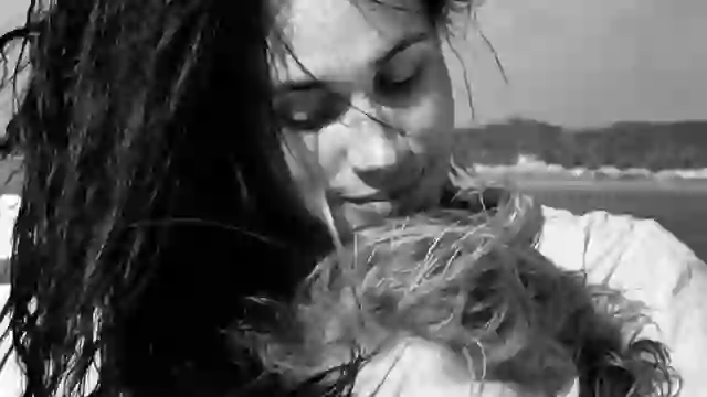 The Duchess of Sussex shared a gorgeous black and white snap where she’s cradling her little girl on what looks like a boat.