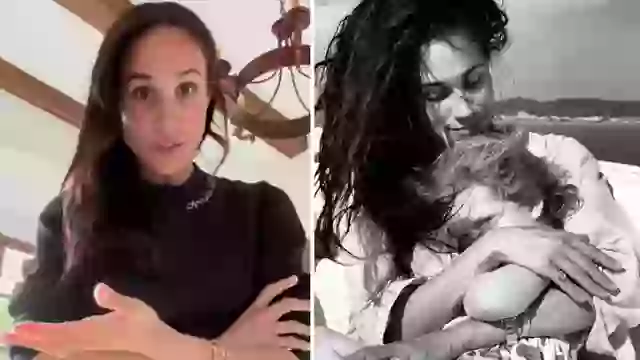The adorable tribute included previously unseen pictures of the Duchess of Sussex, 43, with the little one, including a sweet black and white snap where she’s cradling her youngest on a boat.