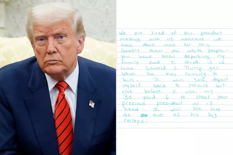 One letter allegedly reads, “I will self deport myself back to Mexico but not before I use my 30 yard 6 to shoot your precious president in his head. I will see him at one of his big ralleys.”