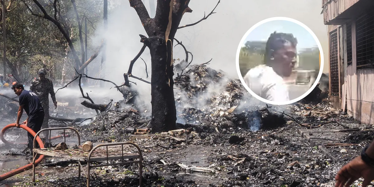 Vishwash Kumar Ramesh, survivor of the Air India plane crash, walking away from the wreckage on June 12, 2025 | Source: Youtube/IndiaTodayNE