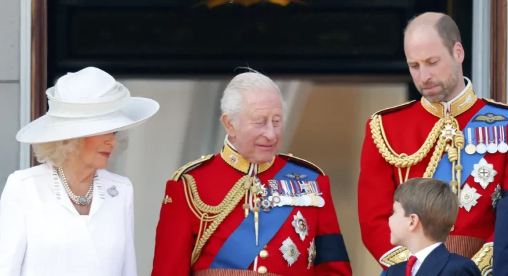 Dressed in coordinated, regal splendor, the royals made a striking appearance as they stood shoulder to shoulder on the Buckingham Palace balcony. King Charles III, resplendent in his scarlet military regalia adorned with gold braiding, epaulettes, and ceremonial medals, stood out as a proud and commanding figure befitting the occasion.