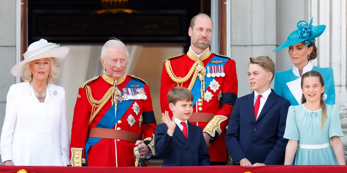 Queen Camilla, King Charles III, Prince Louis of Wales, Prince William, Prince George of Wales, Princess Charlotte of Wales and Catherine, Princess of Wales at the Buckingham Palace balcony during the 2025 Trooping The Colour parade in London, England on June 14, 2025| Source: Getty Images