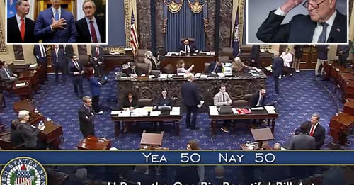 “Today was a historic day for our country, and, we’re very excited to be a part of something that is gonna make America stronger, safer, and more prosperous,” Senate Majority Leader John Thune (R-SD) told reporters following the vote.