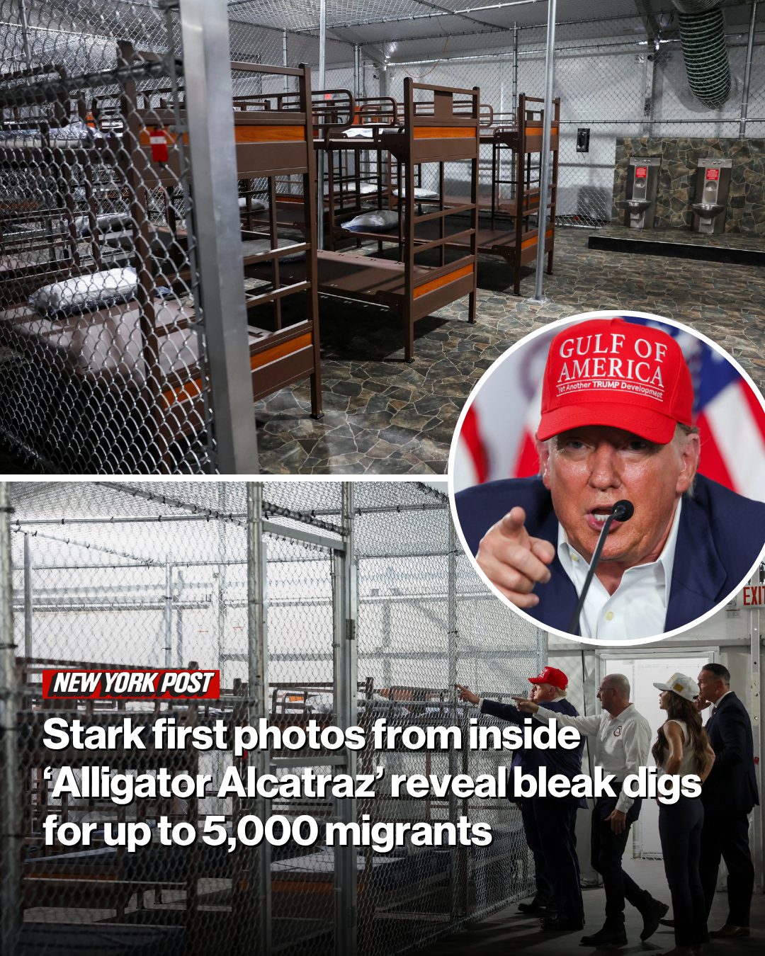 The first photos of “Alligator Alcatraz” give a bleak inside look at the new migrant center deep in the Florida Everglades — as authorities prepare to stash up to 5,000 detainees in wire cages there.