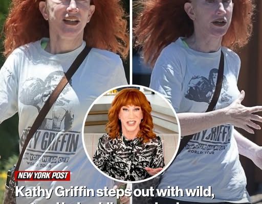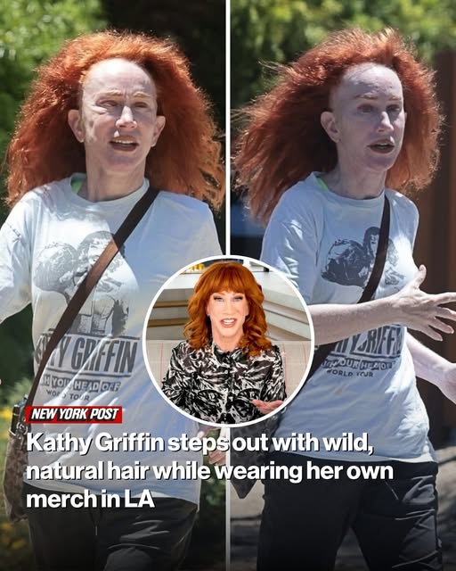 Kathy Griffin was photographed showing off her wild, natural hair and brand merch as she stepped out for a walk on Tuesday.