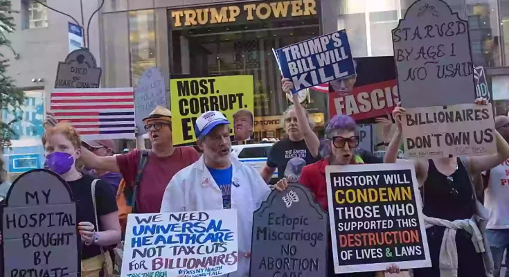 California has been protesting against Trump’s aggressive immigration crackdown (ETIENNE LAURENT / AFP) (Photo by ETIENNE LAURENT/AFP via Getty Images)