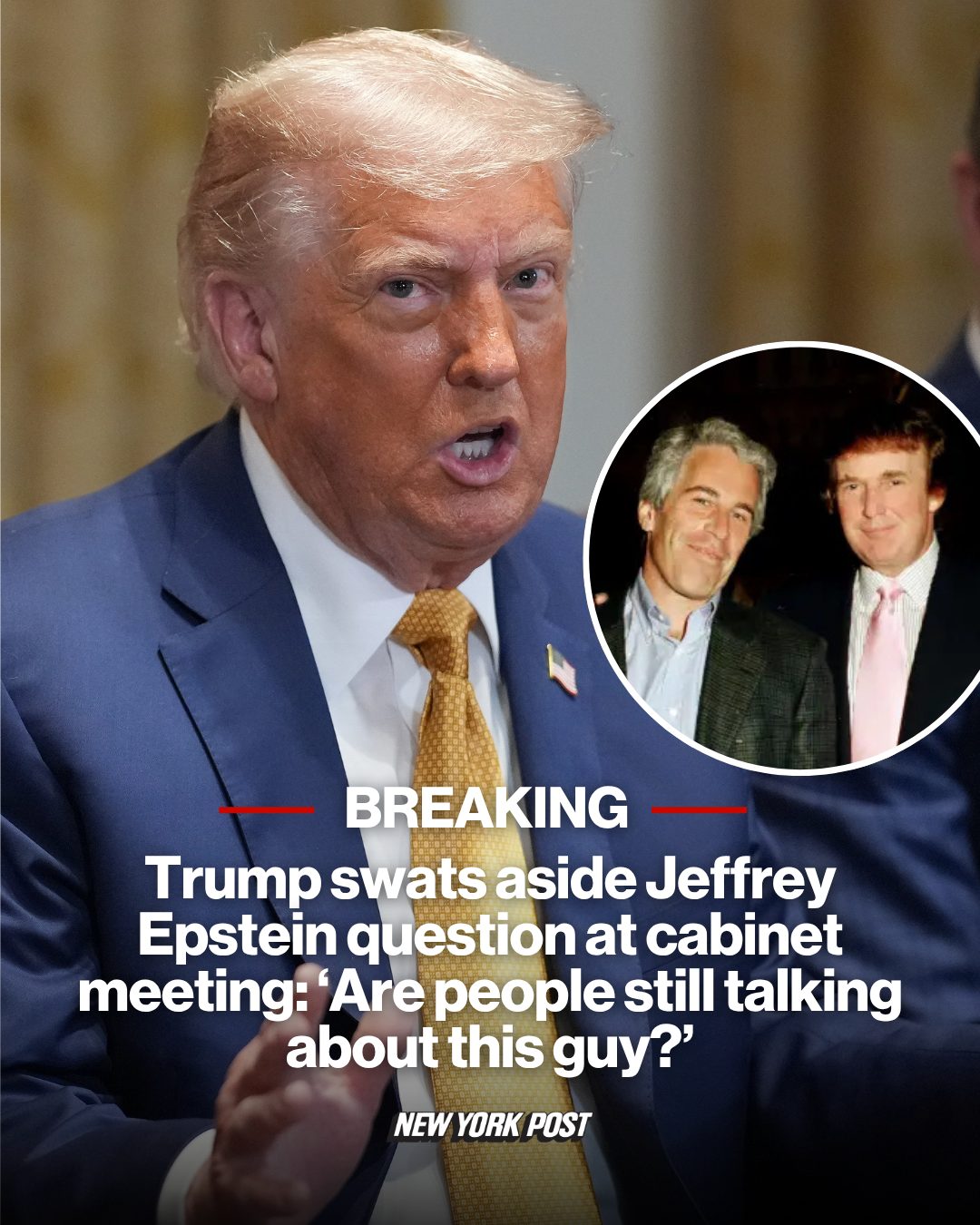 President Trump interjected to offer to allow Bondi to side-step the topic entirely asking: “Are you still talking about Jeffrey Epstein? This guy’s been talked about for years.”