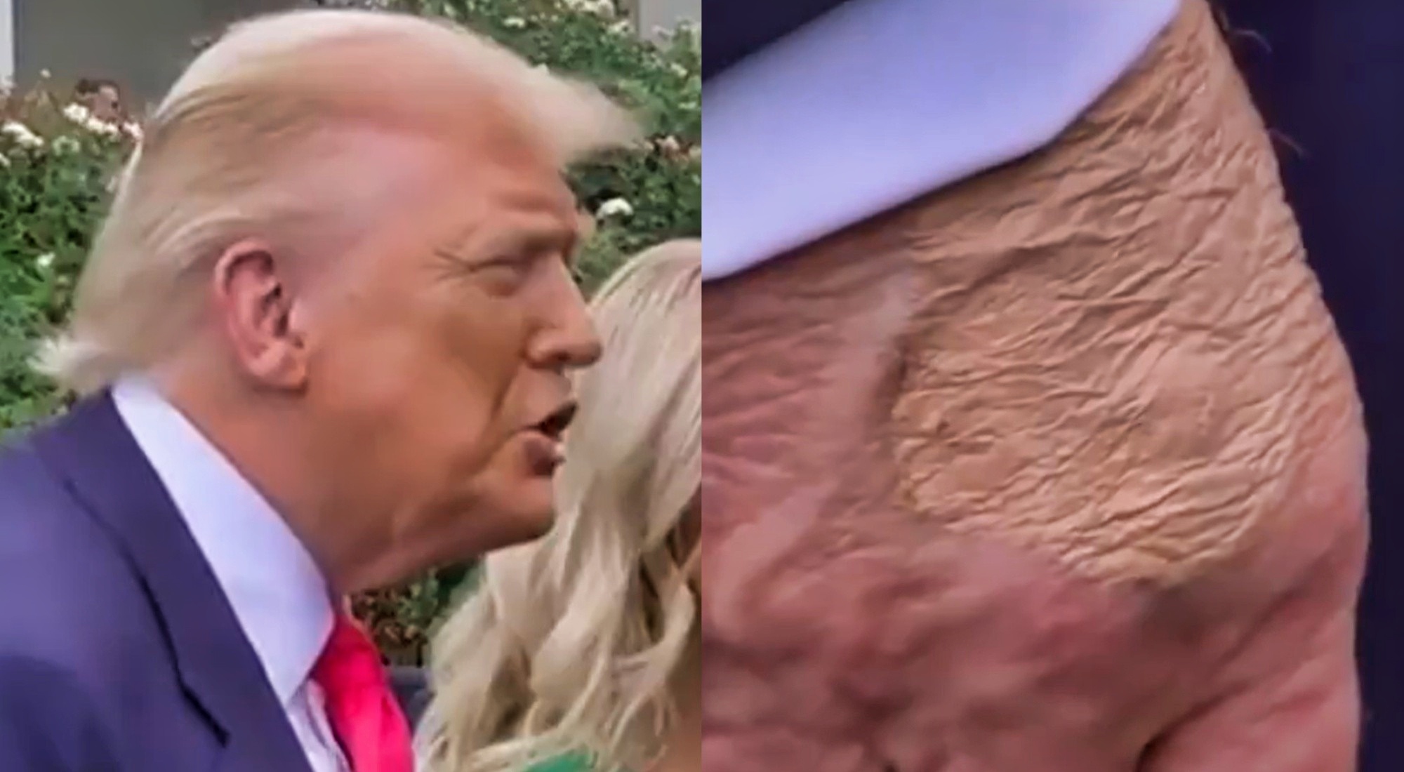 A bruise on Trump’s right hand reappeared, which the White House says is from frequent handshakes. A C-SPAN video shows it covered with foundation during a press briefing. pic.twitter.com/uO7Xb9uYdT