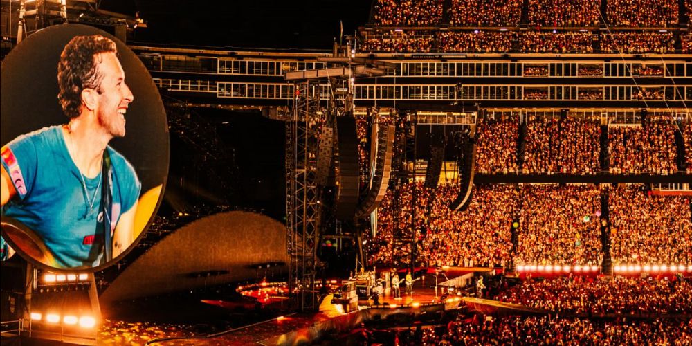 And as vocalist Chris Martin said, “Oh look at these two,” the man instantly ducked down from the frame, while the woman turned away from the camera.