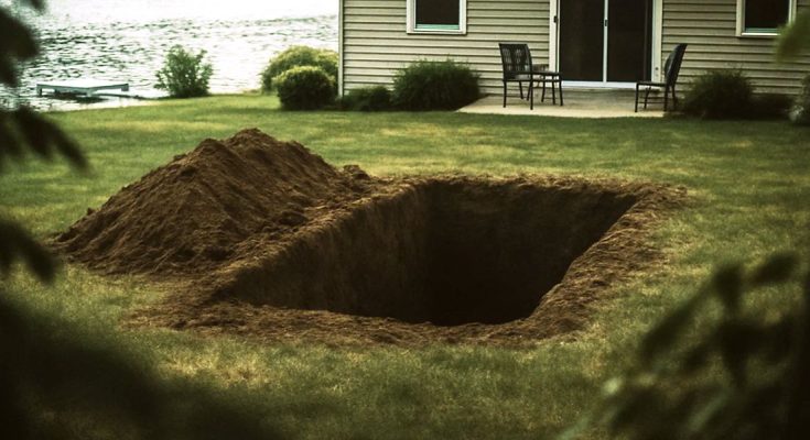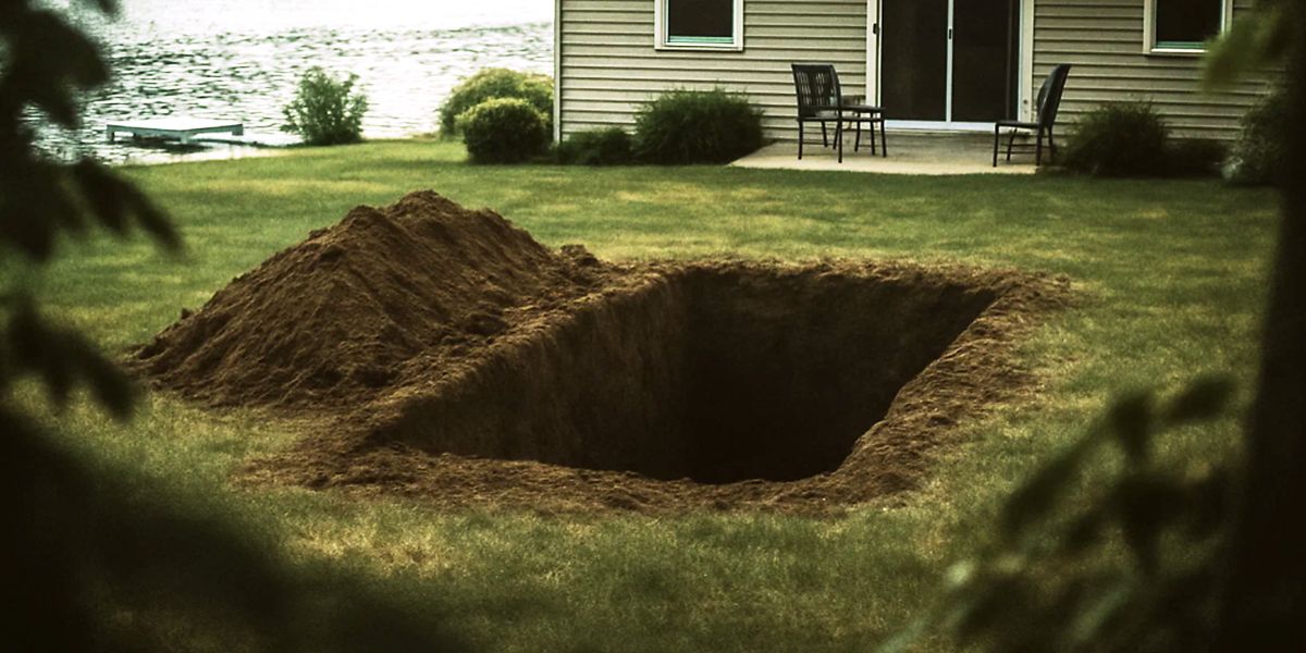 A freshly dug, grave-sized pit behind a lake house | Source: Barabola