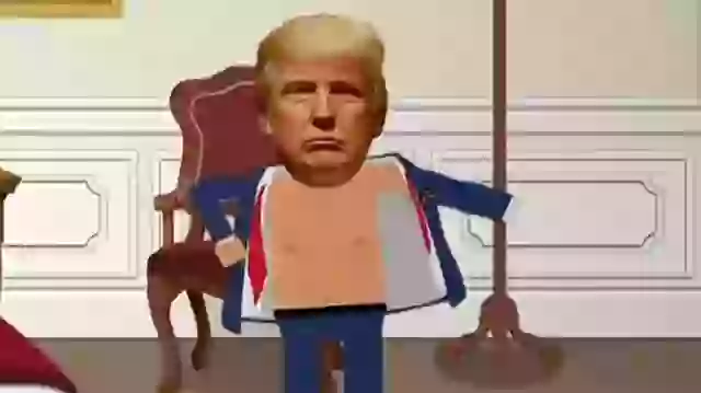 Rather than being fully animated, the creators opted to stick an actual photo of Trump’s head onto a cartoon body.